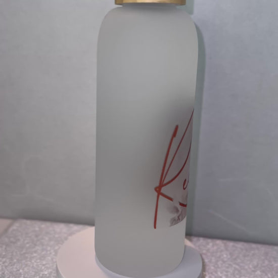 Celebrate the life and memory of your loved one with a beautifully crafted custom memorial water bottle by Sebastian Reese. This frosted glass bottle features a high-quality image, elegant typography, and the name and dates of your loved one—turning a daily essential into a lasting tribute.