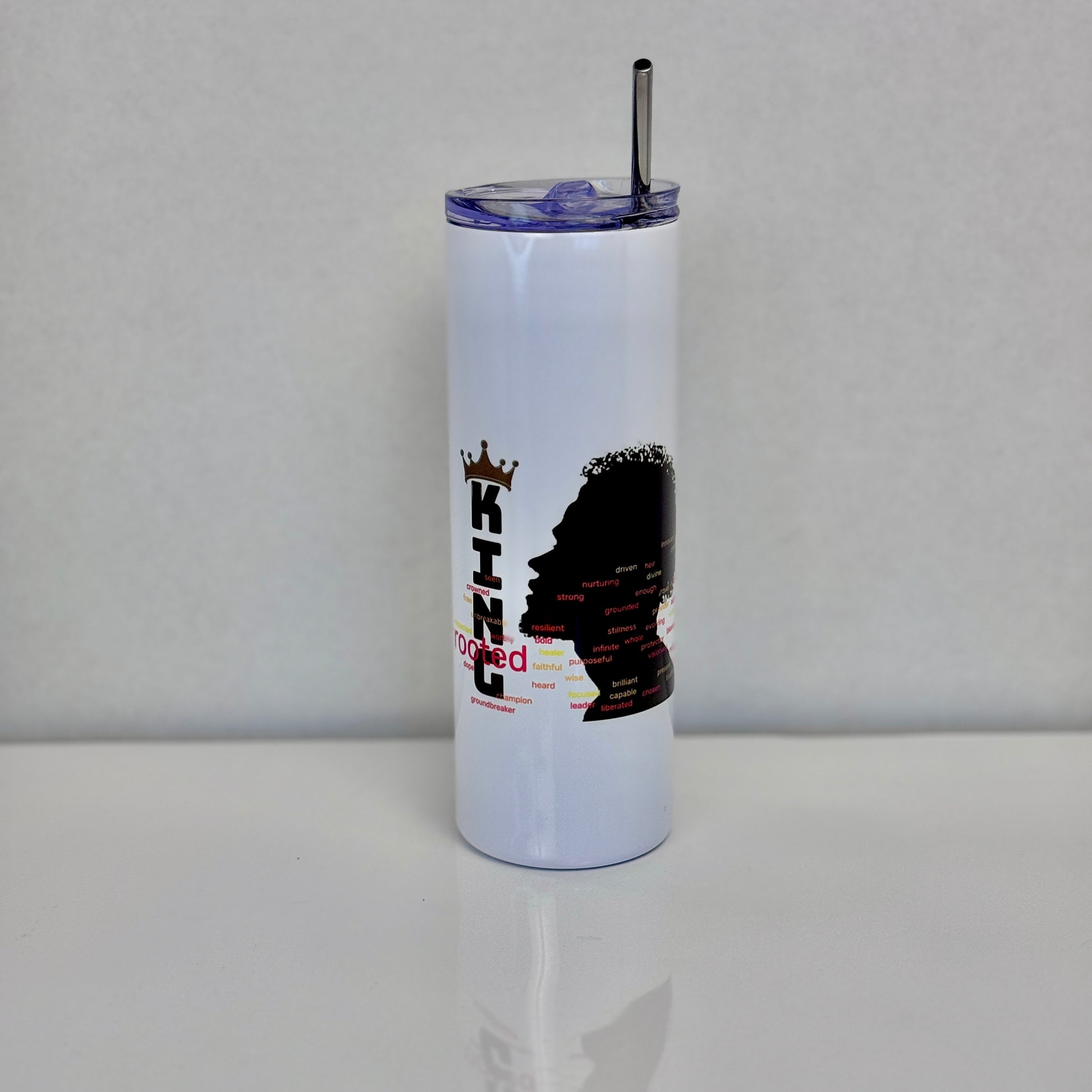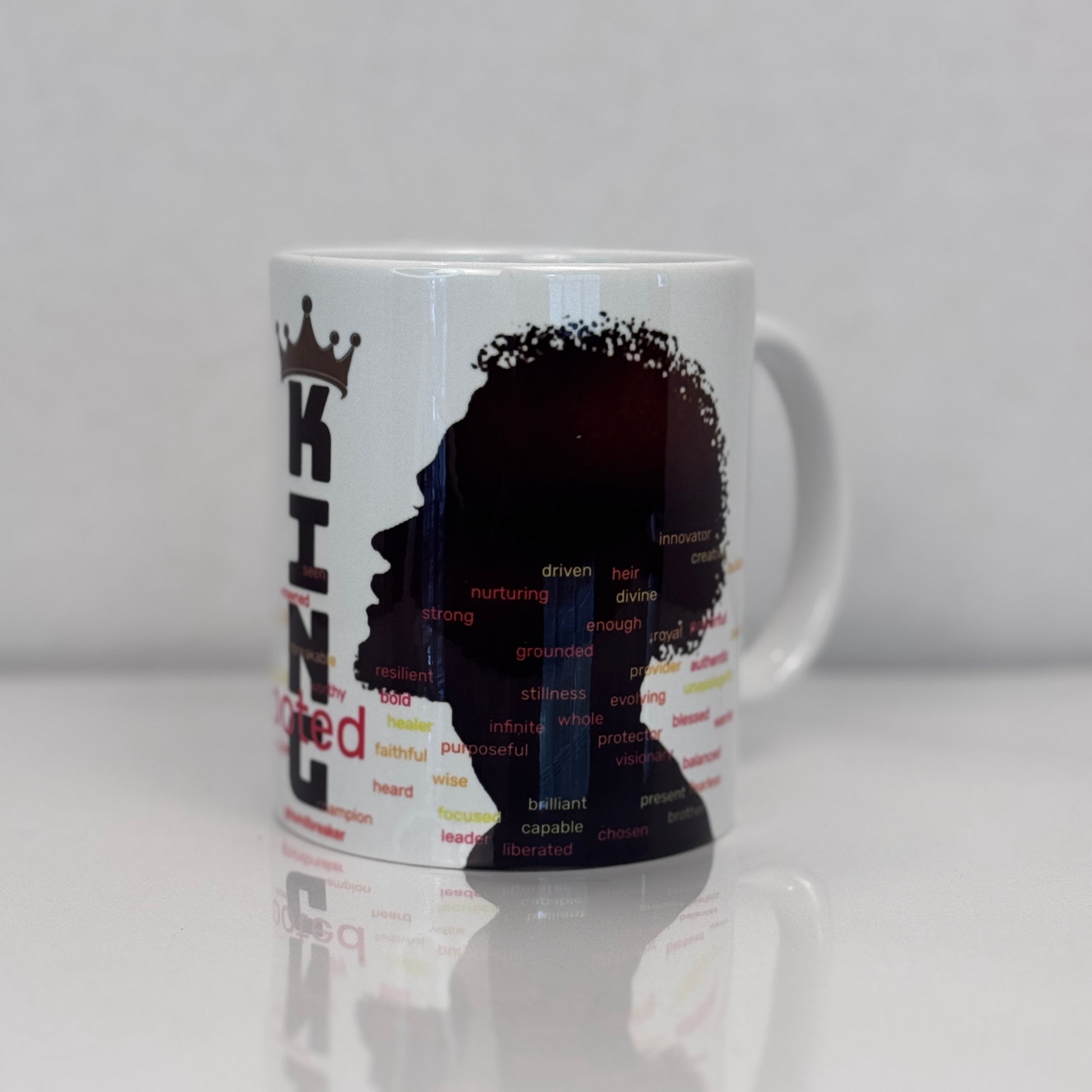 This isn’t just a mug—it’s a mirror. The Affirmed Man is designed to celebrate identity, resilience, and quiet power. Featuring the bold silhouette of a man filled with a word cloud of daily affirmations, this 20oz stainless steel mug is a tribute to every man who shows up, stays grounded, and stands tall—no matter what.